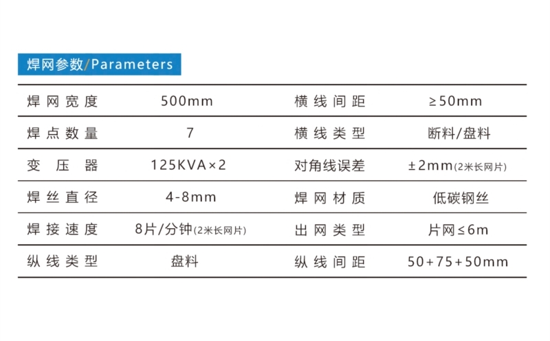 ALC是蒸壓加氣混凝土(Autoclaved lightweight Concrete)的簡(jiǎn)稱,它是以石英砂或粉煤灰、水泥、石灰等為主原料,內(nèi)配雙層雙向冷拔絲鋼筋網(wǎng)片,經(jīng)過(guò)高溫蒸汽養(yǎng)護(hù)而成的多氣孔混凝土成型板材;既可做墻體材料,又可做屋面板、樓層板、外墻造型,是一種性能優(yōu)越、安裝簡(jiǎn)便、靈活的成熟建材。加氣板網(wǎng)片焊接生產(chǎn)線,可以高效率地自動(dòng)焊接ALC所需的鋼筋網(wǎng)片。焊點(diǎn)數(shù)量7個(gè),焊網(wǎng)寬度500mm,焊接絲徑4-8mm,每分鐘約焊接8片。標(biāo)準(zhǔn)配置:放線盤、縱線盤絲入料模塊、伺服送網(wǎng)、橫線料斗、焊接主機(jī)、剪網(wǎng)機(jī)、落網(wǎng)機(jī)構(gòu)??蛇x配置:橫線盤料、出網(wǎng)小車、簡(jiǎn)易循環(huán)冷卻器、空壓機(jī)。河北驕陽(yáng)焊工有限公司,0318-7063097
